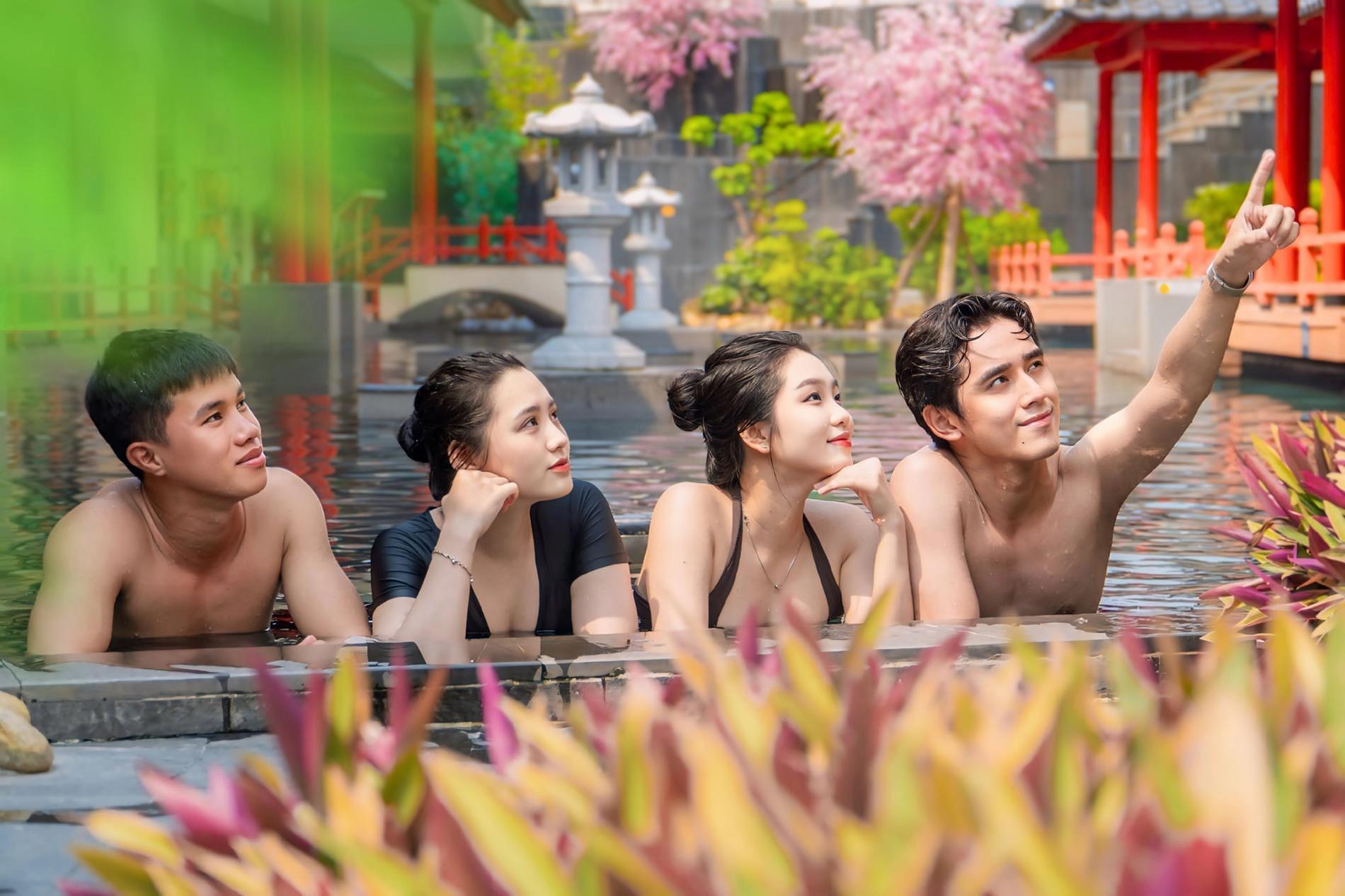 Nhưng hành trình chưa dừng lại. Thả lỏng cơ thể và tâm trí tại suối nước nóng onsen phong cách Nhật Bản, một không gian thư giãn đậm chất truyền thống. Tận hưởng nguồn nước khoáng giàu dưỡng chất nhập khẩu trực tiếp từ Nhật Bản, nổi tiếng với những lợi ích trị liệu như cải thiện tuần hoàn, giảm căng thẳng, xoa dịu cơn đau và mang lại cảm giác sảng khoái tràn đầy năng lượng.