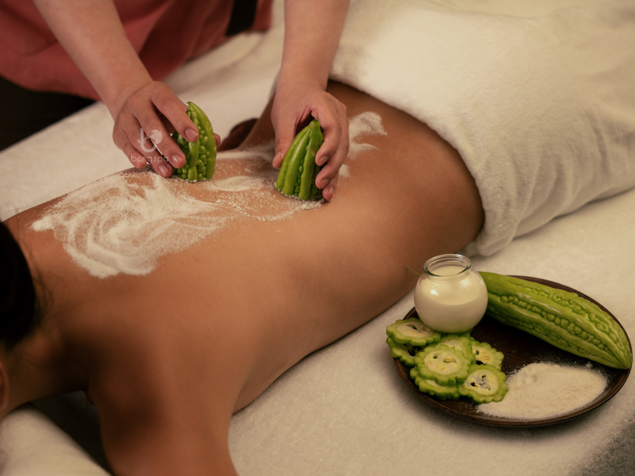 • Scrub khổ qua: Phù hợp cho da nhạy cảm, hỗ trợ giảm mụn lưng và viêm nang lông.